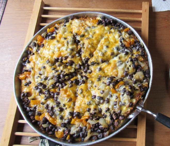 In a hot pan add approx. 1 Tbsp. oil and saute onions and garlic for a few minutes until soft, add corn, beans and seasonings and continue to cook for approx. 5 minutes stirring often. With a potato masher, slightly crush beans. Remove from pan and cool. (I will quite often make a double batch of this filling and use it in wraps, make it into veggie burgers, use it in burrito bowls etc.)