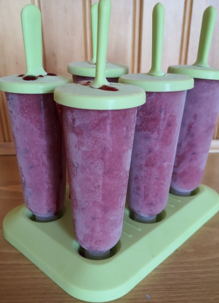 Mix together using emulsion blender and pour into silicone molds. The best ones to use are long narrow popsicle shape. Freeze and Enjoy.