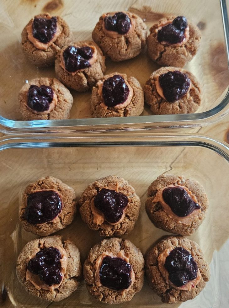 Blend together date puree, oil and vanilla. Add almond flour and salt and mix well. Dough should form a soft dough consistency. Shape into 13 balls using approx. 2 Tbsp. of dough for each one. Place on baking pan and using your thumb make an indent in the center of each ball, shaping and pinching together any large cracks around edges. Add filling of choice. Bake in a 350°f oven for 15-20 min. Cookies should be slightly brown and firm to touch.